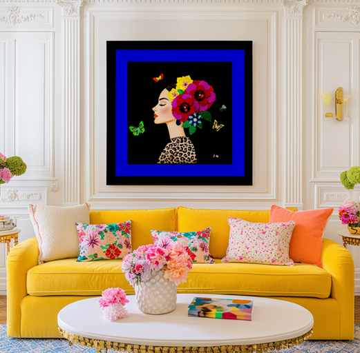 Cette collection unique est le fruit d’une collaboration entre l’intelligence artificielle et les techniques artistiques traditionnelles. Chaque œuvre combine le digital et le manuel, avec des matériaux comme la peinture, le papier, les strass Swarovski et bien plus encore. Ce mélange symbolise l’adaptabilité et l’innovation dans ma quête artistique, même face aux défis physiques liés à mon handicap.